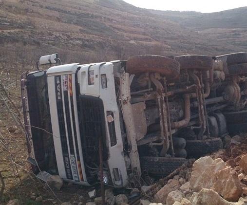 إصابة مواطنين بانقلاب شاحنة طاردتها شرطة الاحتلال شمال الخليل