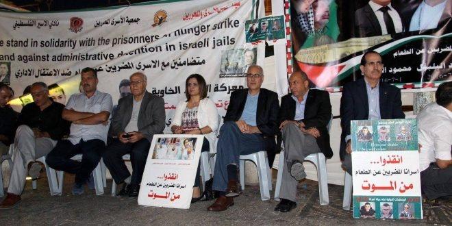والقى محمود العالول عضو اللجنة المركزية لحركة فتح كلمة أكد فيها على الجهود المبذولة من القيادة الفلسطينية والرئيس ابو مازن بالتدخل لإنقاذ حياة المضربين.