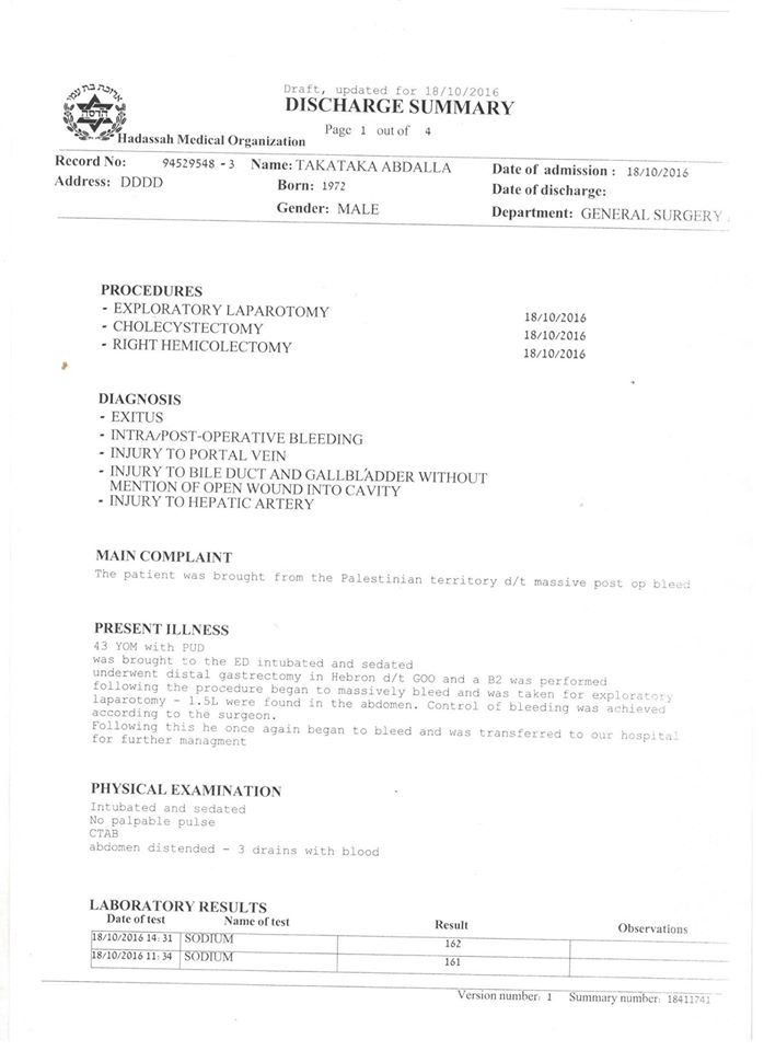 واوضح هاني ان مسؤولا كبيرا اشرف على التشريح قال لعدد من ذوي المتوفي ومن بينهم شقيقه محمد وابنة اخته وابن خاله علي خضر طقاطقة الذي يتقن العبرية جيدا ان التقرير الصادر من قبل مستشفى بيت جالا الحكومي هو اقرار بحد ذاته بوجود خطأ طبي بل هو كافي من اجل الادانه.