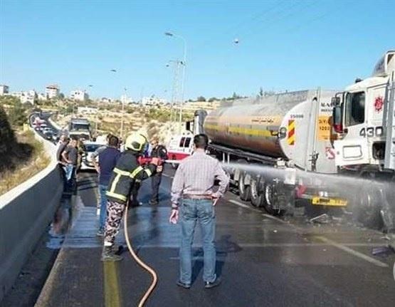 وذكر تقرير إدارة العلاقات العامة والإعلام في الدفاع المدني، أن الطواقم توجهت إلى مكان الحادث، وعند الوصول تبين ان الحادث تصادم بين مركبتي شحن أحدها صهريج نقل وقود مسال، ونتج عن الحادث إنسكاب للوقود المسال على الشارع وإعاقة حركة المرور والسير، وعليه عملت الطواقم على تأمين موقع الشاحنتين ومنع تسرب الوقود ومعالجة الوقد المنسكب على الشارع وإزالته لمنع إنزلاق المركبات وتأمين حركة المرور والسير على الشارع أصولا، كما وتم تأمين تفريغ ونقل الوقود المسال من الصهريج الذي وقع بعه الحادث إلى صهريج آخر تم إحضاره.
