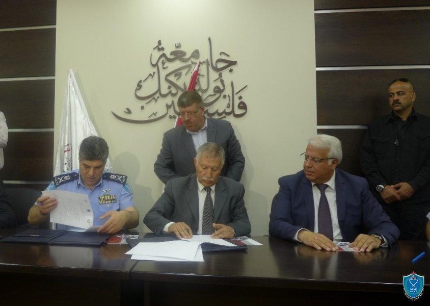 وذكر بيان إدارة العلاقات العامة والإعلام بالشرطة، بأنه وانطلاقاً من مبدأ الشراكة المجتمعية مع كافة مؤسسات المجتمع المحلي وضمن إطار سياسة الشرطة الهادفة إلى التواصل مع كافة المؤسسات والقطاعات، قام اللواء حازم عطالله مدير عام الشرطة الفلسطينية بتوقيع مذكرة تفاهم وتعاون مع جامعة بوليتكنك فلسطين هدفت إلى إنشاء مركز للسلامة المرورية داخل الجامعة وللتبادل المعرفي والتكنولوجي وتطوير الكفاءات وبناء الكادر وتنمية الأبحاث العلمية والتطبيقية المشتركة فيما يتعلق بالسلامة والثقافة المرورية، بحضور عطوفة محافظ محافظة الخليل السيد كامل حميد وقادة الأجهزة الأمنية وممثلي المؤسسات الحكومية والأهلية .
