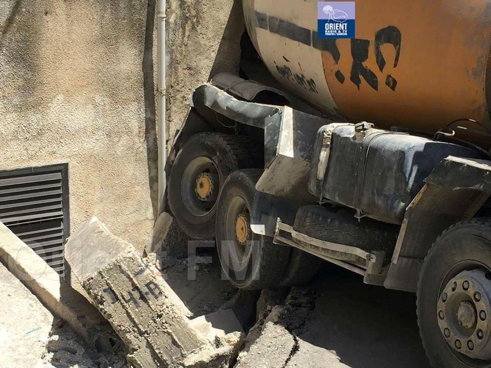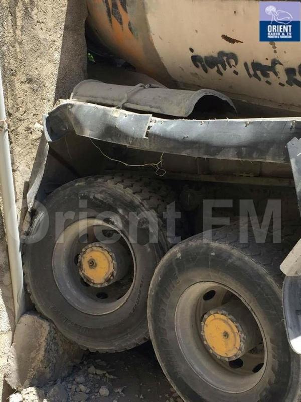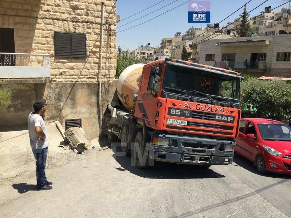 اما في منطقة وادي ابو سعدى في مدينة بيت ساحور فقد اصطدم خلاط باطون بمنزل وادى لأضرار مادية