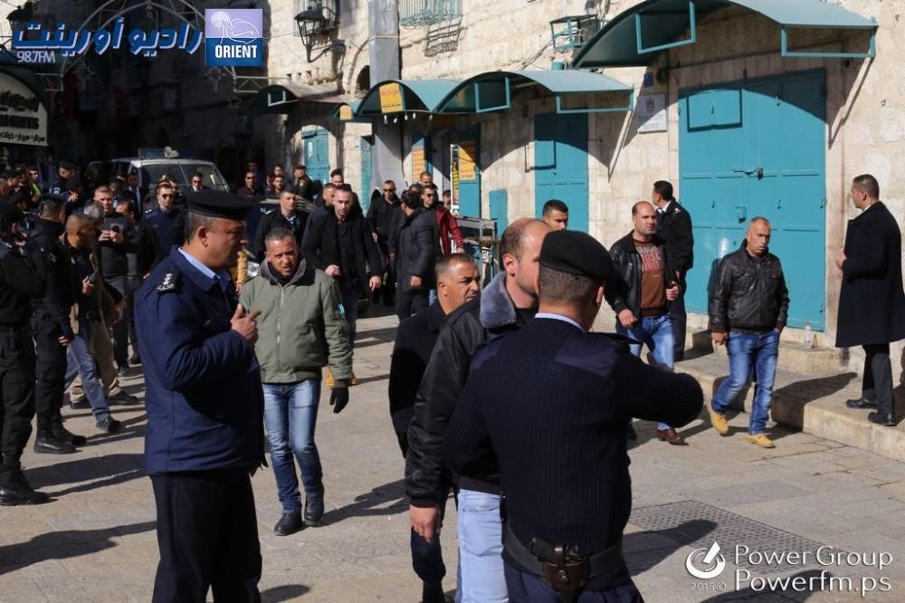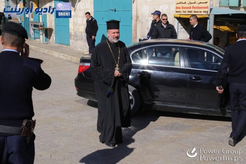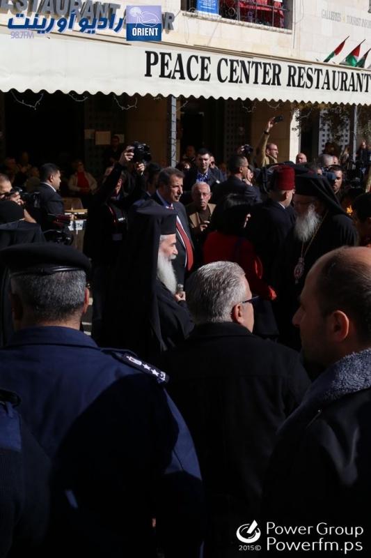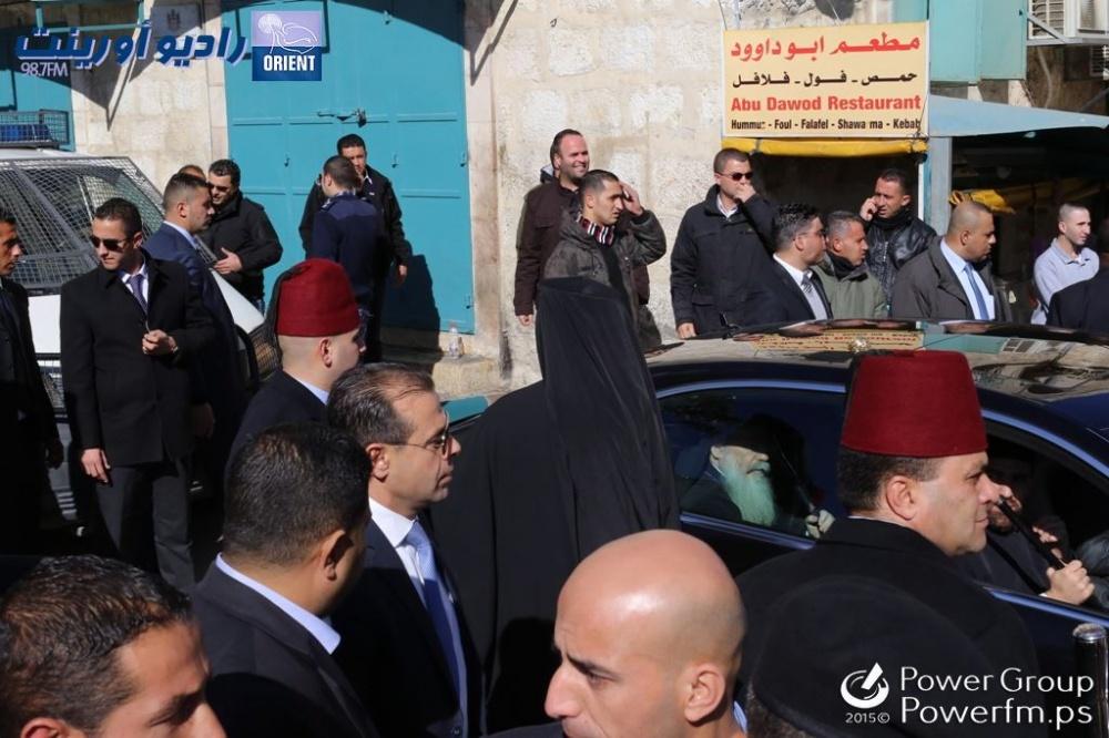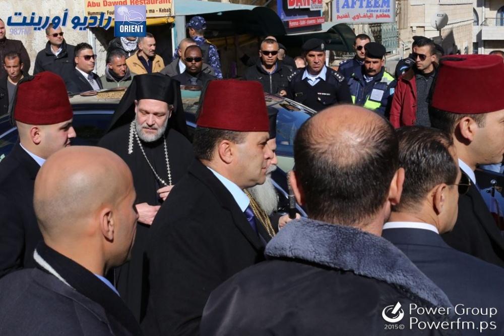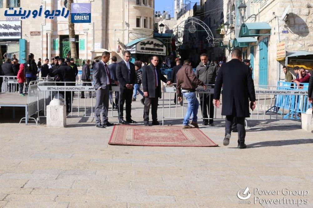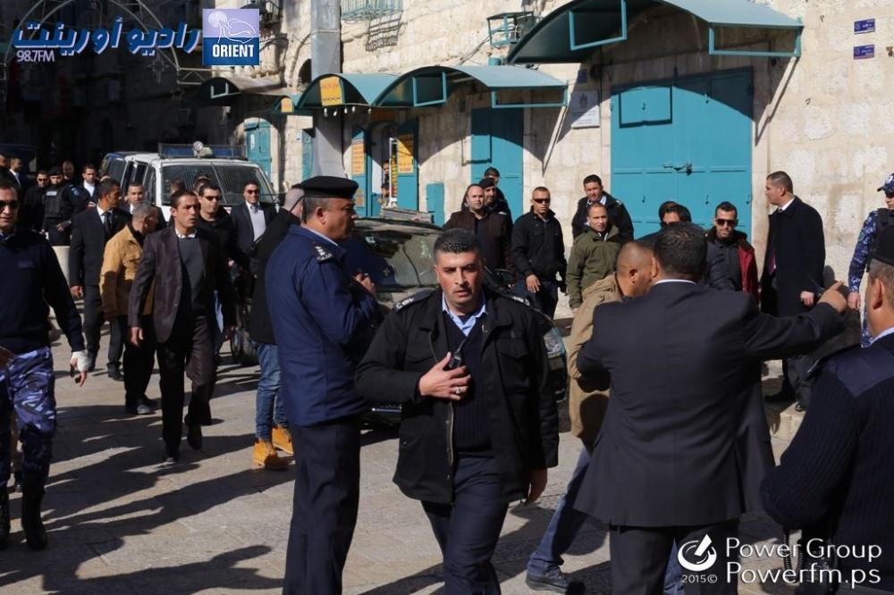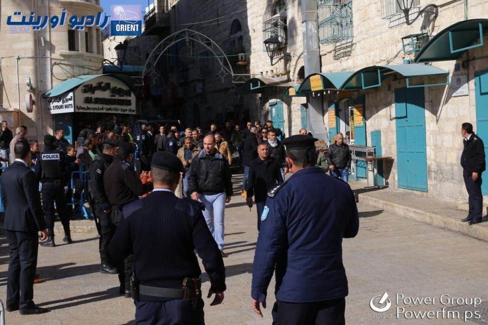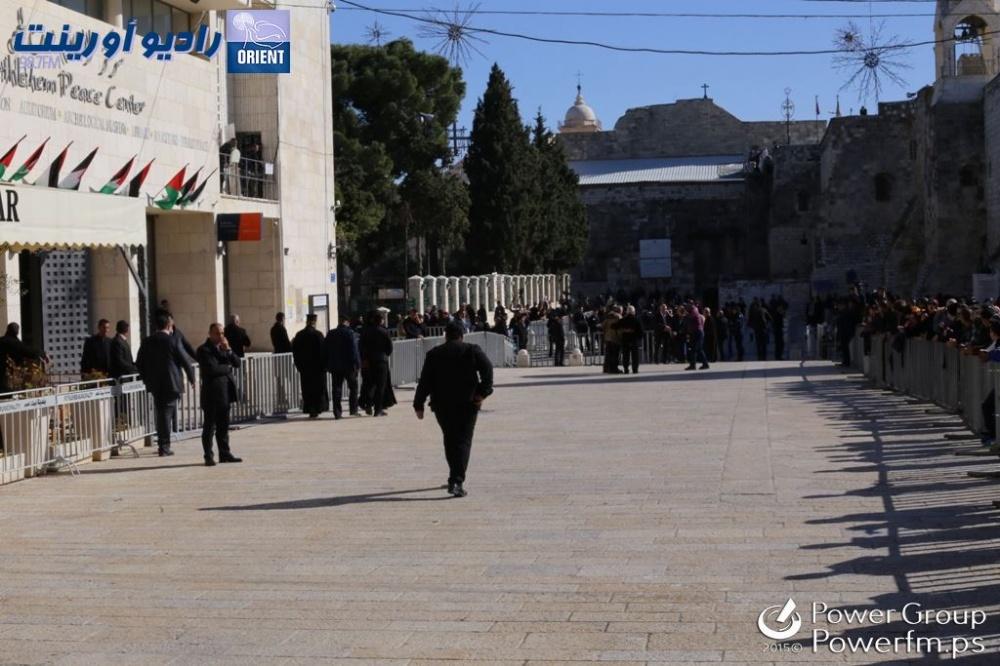 وتشهد محافظة بيت لحم اجراءات امنية مشددة وعير مسبوقة تمثلت في انتشار منذ ساعات الصباح الباكر لمئات من أفراد الشرطة والأجهزة الأمنية المختلفة على مختلف مفترقات الطرق التي ستكون مسارا لمواكب المطارنة والبطريرك، من أجل تأمين وصولها إلى ساحة المهد.