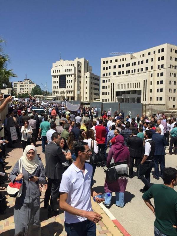 شبكة وتر- تظاهر اكثر من 5 الاف مواطن امام مقر مجلس الوزراء ظهر اليوم الثلاثاء رفضا لقانون الضمان الاجتماعي.