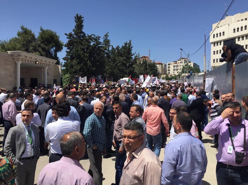 بالصور - الالاف يتظاهرون أمام مجلس الوزراء رفضا لقانون الضمان