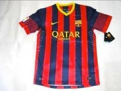شبكة وتر - برشلونة - أزاح نادي برشلونة بطل الدوري الأسباني لكرة القدم اليوم الثلاثاء الستار عن شكل قميص اللعب الذي سيرتديه نجومه في الموسم المقبل 2013-2014 ، في المباريات التي يخوضها على أرضه وكذلك خارج أرضه. ويحمل قميص الفريق شعار شركة الخطوط الجوية القطرية ، التي تدفع للنادي 25 مليون إسترليني في العام الواحد كجهة راعية.