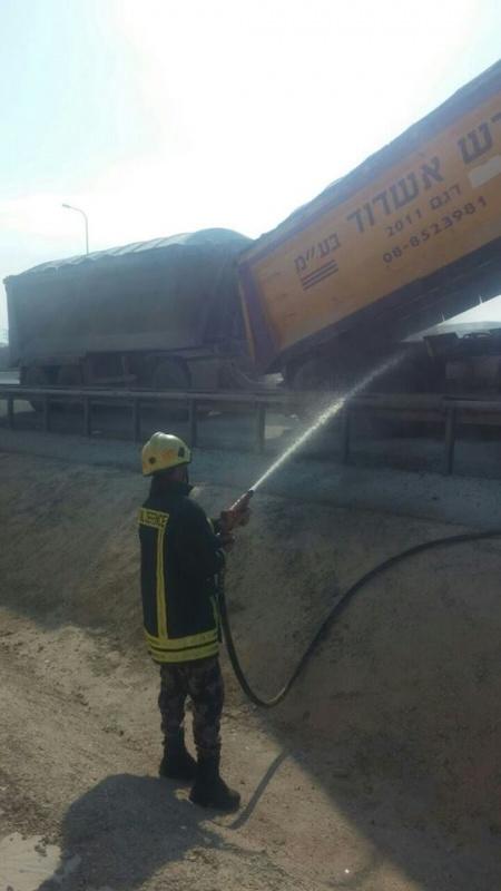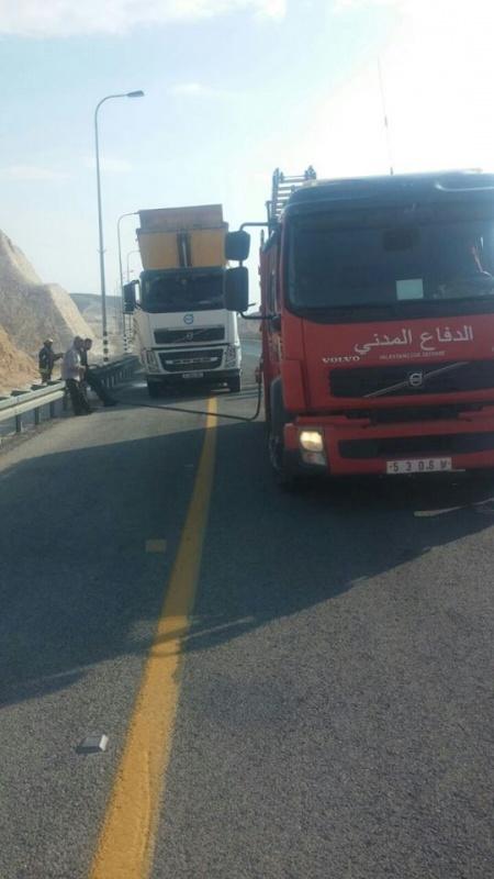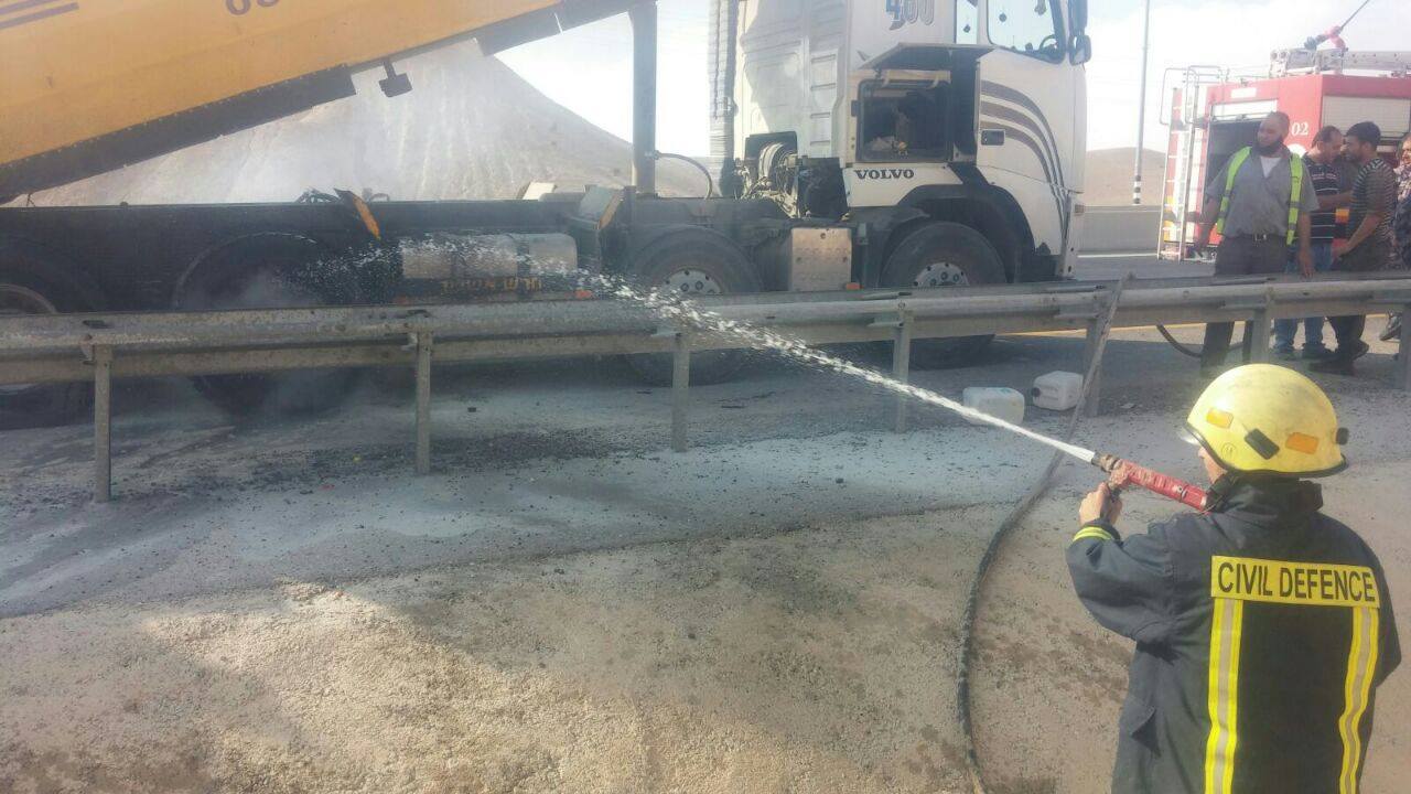 بالصور- دفاع مدني أريحا والأغوار يحمي مركبة شحن من الإحتراق