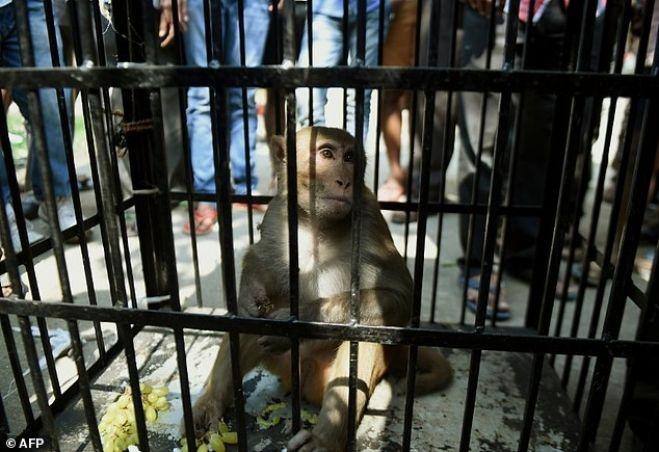 وعندما رصد سكان في العاصمة التجارية للهند سيون أحد هذه القردة صباح الجمعة، اتصلوا بالمختصين للقبض عليه في عملية تكللت بالنجاح بفضل بعض ثمار الفاكهة التي تم وضعها على الأرض للإيقاع به.