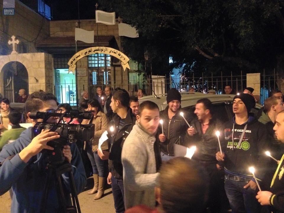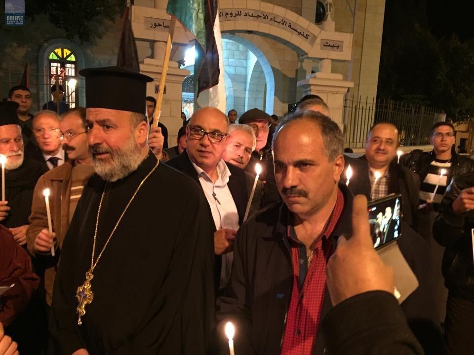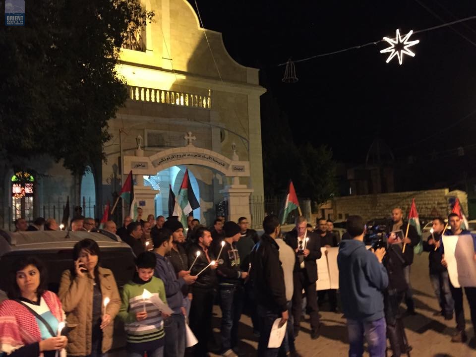 وندد المواطنون الذين تجمهروا أمام كنيسة الآباء الأجداد للروم الأرثوذكس ببيت ساحور، بالأفعال الوحشية والإرهابية التي تقوم بها داعش، واخرها اعدام الطيار الأردني حرقاً، وعمليات القتل المستمرة التي يقوم بها التنظيم باسم الدين، الذي لا يمتون له بصلة، كما كتب المتضامنون على اللافتات المرفوعة.