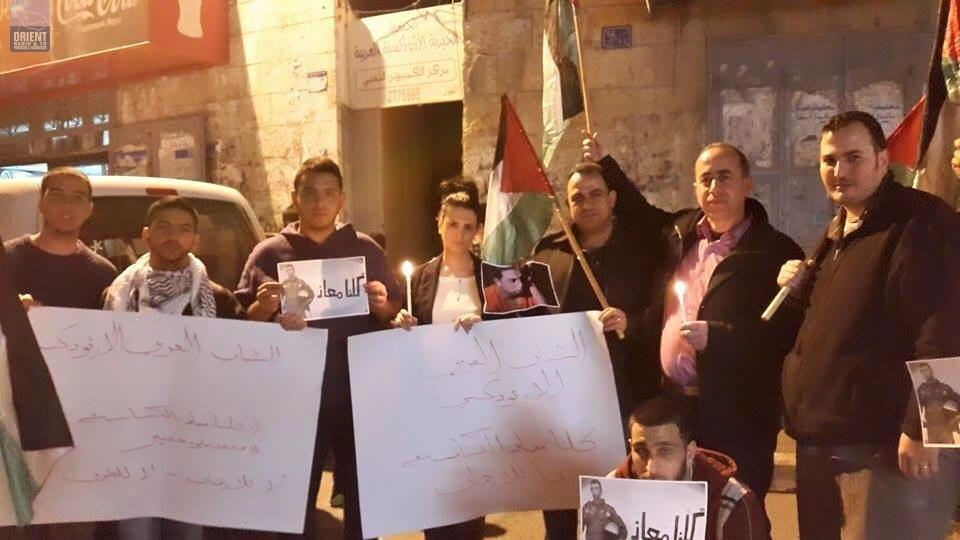 شبكة وتر - نظّم مواطنون في بلدة بيت ساحور، مساء اليوم الخميس، وقفةً تضامنية مع ذوي الشهيد الأردني معاذ الكساسبة، الذي اعدمه تنظيم الارهابي "داعش" حرقاً.