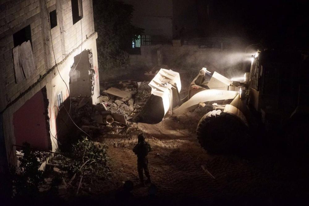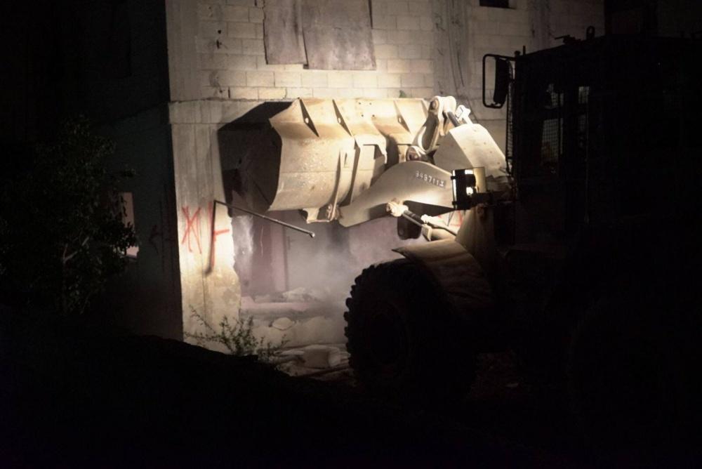 وهدمت جرافات الاحتلال الطابق الثاني لمنزل العائلة، في حين لحقت أضرار جزئية بالطابق الاول.
