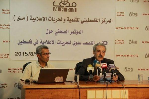 واكد موسى الريماوي مدير عام مركز "مدى" ان اوضاع الحريات الاعلامية في فلسطين شهدت خلال النصف الاول من العام 2015 المزيد من التدهور مقارنة بذات الفترة من الاعوام السابقة، وان الشهور الستة الاولى من العام الجاري حملت المزيد من المؤشرات التي لا تبشر بأي تحسن على حال حرية الصحافة والصحافيين في فلسطين خلال الفترة القريبة المقبلة.