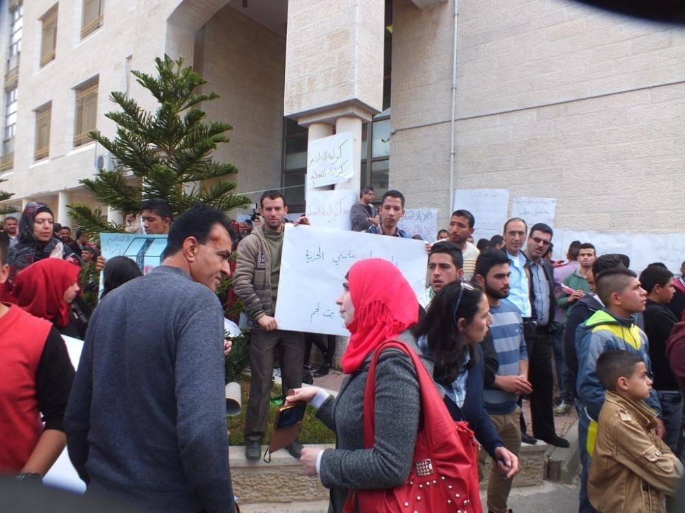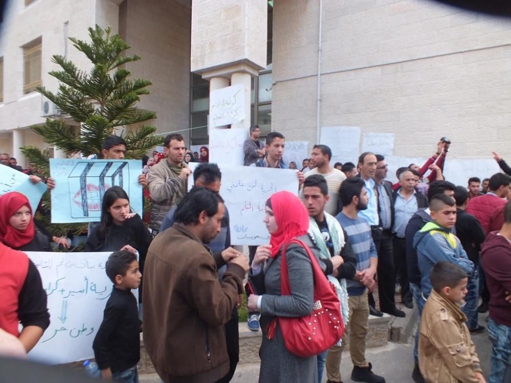 وطالب المعلمون بالإفراج عن اثنين من زملائهم المعلمين الذين جرى اعتقالهم بالأمس في بيت لحم.