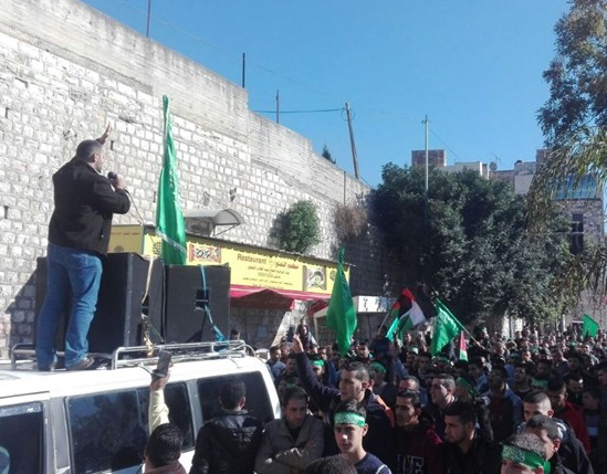 ورفع المشاركون بالمسيرة رايات حماس الخضراء وهتفوا للمسجد الاقصى وضد الإدارة الأمريكية.