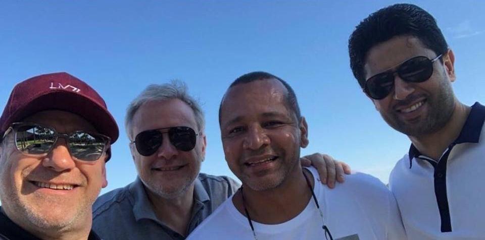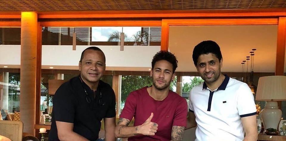 ونشر والد اللاعب البرازيلي نيمار، صورة عبر حسابه الرسمي في إنستجرام، وتجمعه الصورة بنجله وناصر الخليفي وأنتيرو هنريك المدير الرياضي لباريس.