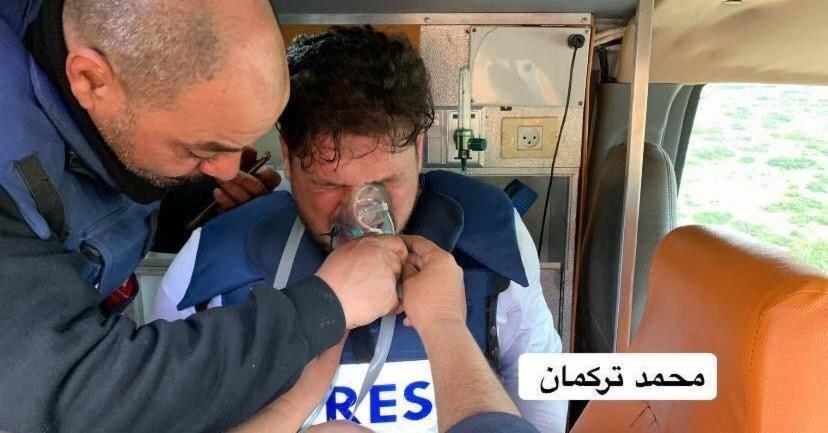 (2-2) اصيب الصحفي عبد المحسن شلالدة، بعيار معدني مغلف بالمطاط في رأسه، اثناء تغطيته مسيرة سلمية في منطقة رأس الجورة شمال في مدينة الخليل.