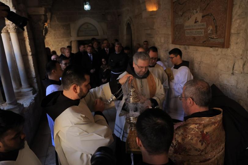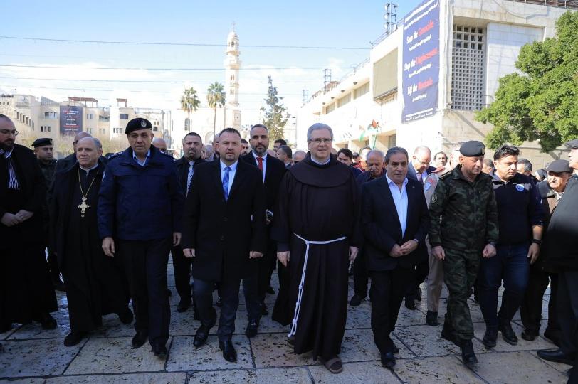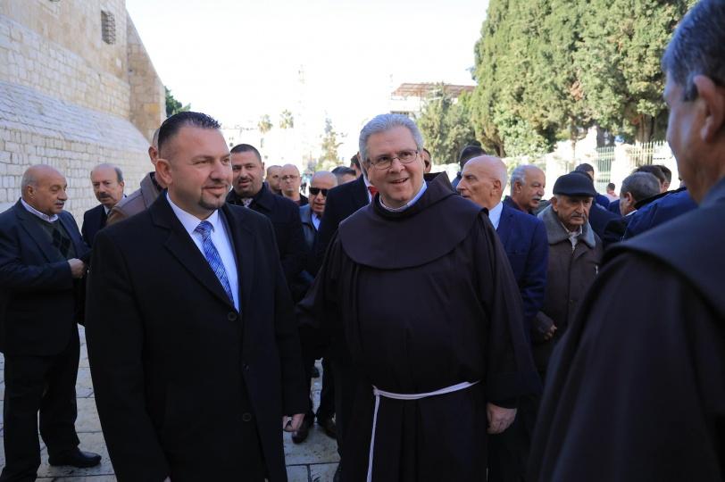 رئيس وأعضاء مجلس بلدية بيت لحم يشاركون في استقبال حارس الأراضي المقدسة قدس الأب فرانشيسكو باتون بمناسبة عيد الغطاس