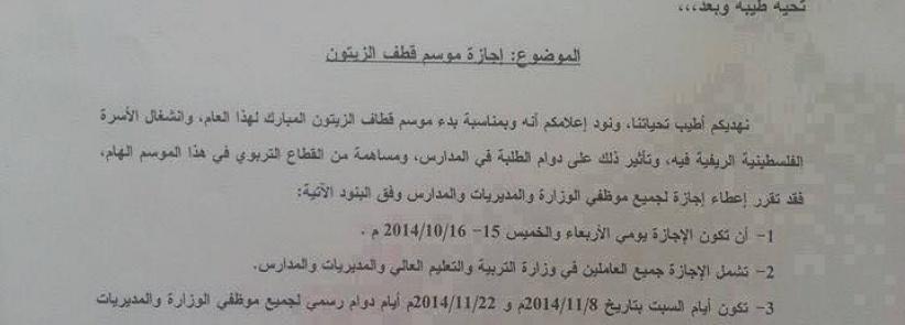 "التربية": الأربعاء والخميس عطلة رسمية لقطف الزيتون